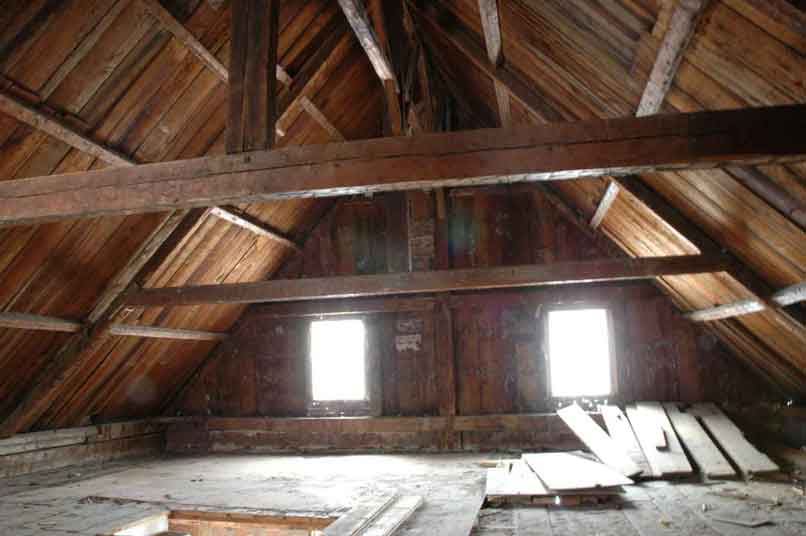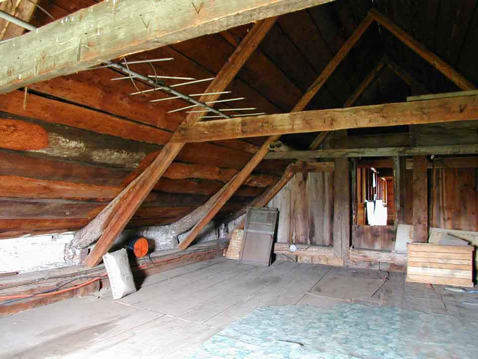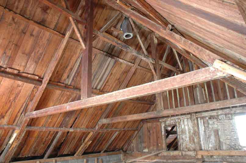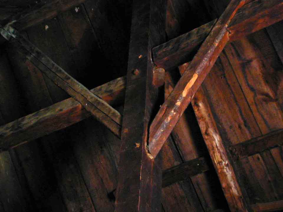 La mode des chambres au deuxi�me �tages n�est pass�e que tr�s tardivement. Donc pas trop de modernisation est venu briser ou d�coup� des pi�ces de bois dans la charpente du toit. Cette charpente de toit semble intacte � 95 %.