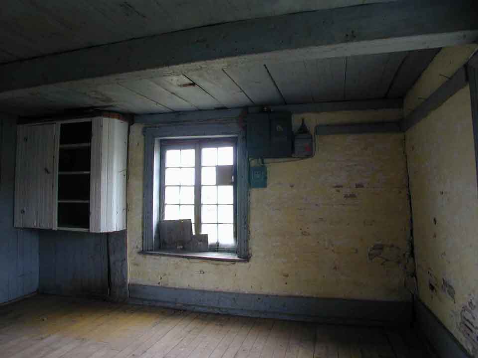 Les murs de cr�pi curet�s, laisse appara�tre le carr� des murs en pi�ce sur pi�ce massives et peintes en vieux blanc, ceci t�moignent d�une vie ant�rieure dans ce fournil, � la m�me �poque qu�un �tre de pierre et four � pain, qui occupait l�emplacement de l�escalier actuel ; des cicatrices au toit et plancher et cave, t�moignent de cette chemin�e de pierre de l�origine de la construction du fourni.