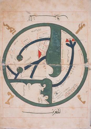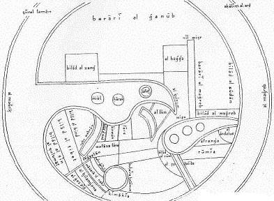 | Worldmap from his; Akalim al-buldan, at the Suleymaniye Library, Ayasofya | |||||||||||||||