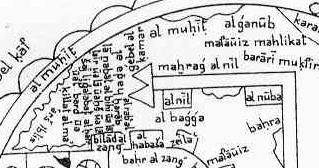 | As illustration only: the african part of a worldmap of pseudo ibn al Wardi; from one of the many copies of his mss. | ||||||