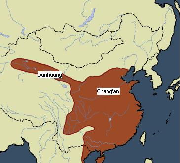 | The map of Tang China shows clearly how Chinese influence was growing along the silk road. Dunhuang was the exit point of the old China situated on the Chinese wall. Chang'an was the tang capital where are found statutes of Kunlun slaves. The pictures found of Kunlun slaves at Dunhuang have as much change to represent Indonesians or Africans as the statues. | ||||||||||||||||||||||||||||||