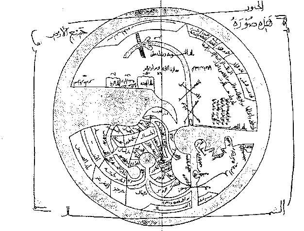 | Back to Table of Contents To next page Ibn-Hawqal (970) from Baghdad. (Kitab Surat al-Ardh) (the shape of the earth). also known as: (al-Masalik wa'l-Mamalik) -------------------------------- The picture left is a map of the Indian Ocean. It is not found in the original manuscript of ibn Hawqal but in Persian translations of it. (map found in the Miller atlas) |