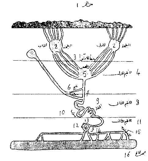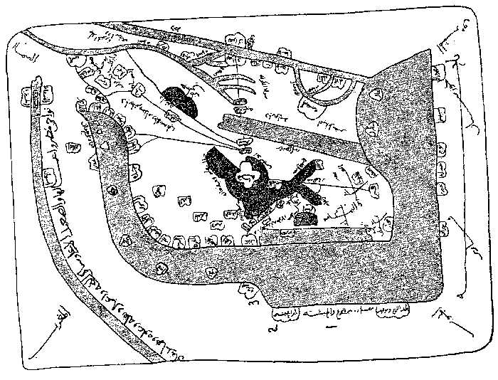 | On top: The Nile 1 Mountain Qumr 9 Cataracts 2 first lake, second lake 10 Assouan 3 equator-line 11 third climate 4 first climate 12 Misr 5 lake 13 Djazira 6 arm 14 Guizeh 7 capital of Nubia 15 Alexandrie 8 second climate 16 the sea |