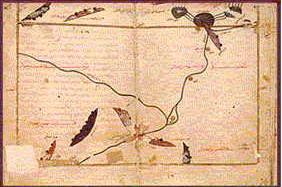 | Back to Table of Contents 2 To next page Al Idrisi (1150) (Kitab Ruyar) written in Sicily ----------------------------- To the left: The sources of the Nile according to Idris (map from the Paris manuscript) |