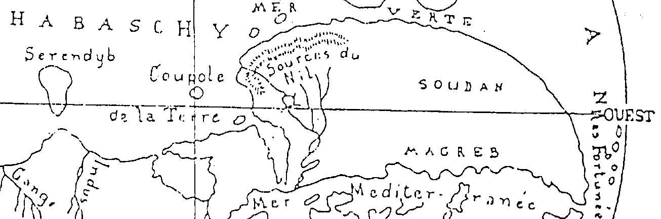 After Ibn Tulun inquired into the secret behind the old man's longevity, he went on to ask about the sources of the Nile. The aged Copt responded, "The source of the Nile is a vast lake which is located at that geographical point where night and day are always of equal duration." I've seen in Djografia (Ptolemy) the Nil represented as coming from the feet of the mountains of Qomr, its waters, coming first from 12 sources, streams into two lakes resembling those of Basra and later reunited and travel then through sand and mountain lands. Traversing the land of the Negroes (Sudan) who adjoin the regions of the Zanj. From it there branches out into a gulf (khalij) which falls into Bahr az Zanj, the sea where the island of Qanbalu is found. Among the inhabitants of the island is a community of Muslims, now speaking Zahjiyya (the language of the Zanj) who conquered this island and subjected all the Zanj on it in the same manner as the Muslim conquest of the island of Crete (or Cyprus or the Creoles) in the Mediterranean.(ka ghalabat al-Muslimin 'ala jazirat Iqritish) This event (the conquest of Qanbalu) took place around the period of the changeover from the Umayad to the Abbasid dynasty (c.747-754). From them (Qanbalu) to Oman is about 500 farsakhs (1415 miles) according to the guess rather then the exact calculation by the sailors. Many sailors (nakhoda) of Syraf and Oman who are on these seas, say that they find at about the time of the floods of the Nile in Egypt, changes in the color of the sea water, there at that small place where the current of the river continues in the sea. The river comes from the mountains of the Zendj and is about one mile large. The water is sweet and becomes muddy when the floods arrives in Egypt and in Said. One finds in this sea the chouhman or crocodile, so common in the Nile, it is also called el-waral. About the arm of the Nile which as we have said throws itself in the sea of Zendj, it is only a channel which comes from the upper basin of the Zendj and it serves as frontier with the lands inhabited by the Abyssiniennes. Without that channel, the vast desserts, and the moving sands, the enormous turbulent hordes of the Zendjs would have chased the Abyssiniens from their native lands. It has a gulf towards Abyssinie, as far as Berbera, the land situated between the Zendj and the Abyssins. This gulf is called Beurberian, and according to Al-Fazari 7 or 6 hundred parasangs by 500. Do not confuse this land of Berbera with the Berbers, situated in the land called Ifrikiyah, a land very distinct of the one we are talking about, they only have the name in common. The sailors of Oman pass by the channel (of Berbera) then go on the sea of the Zanj to reach the island of Qanbalu, as we have mentioned . It has a mixed population of Muslims and Zanj idolater. The sailors of Oman think that the gulf of Beurberien, which they call the sea of Berberia and of the land of Jafonni (or Djafouna)(Ras Hafoun), is way bigger then we have said. The waves of this sea are as big as high mountains, the rollers are called blind because they grow into great mountains and open deep valleys between them. But they do not produce the foam as they do in other seas. The sailors say the waves are bewitched. The sailors from Oman who sail there are Arabs from the tribe of Azd. And when traveling there and having there boat taken up to the top of the waves, they pray: O Berbera and Jafonni and your bewitched waves. Jafonni and Berbera and their waves are as you see. The goal of these (ship captains) on the sea of the Zanj is the island of Qanbalu and the land of Sofale and the Waqwaq is on the extremity of the country of the Zanj and the Low Countries thereabout. There also are the lowest parts of the sea of the Zanj. |