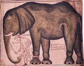 | An elephant; the animal was a present from King Louis IX of France to King Henry III in 1250. On the big ears it can be seen that this is clearly an African elephant. | ||||||||||||||||||||||||||||||||||||||||||||||