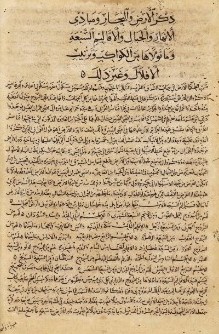 | The title on this page of Masudi's mss reads: Chapter on the earth, the seas, the rivers, the mountains, the seven climates, the stars and the seven planets. |