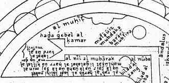 | The african part of the world map of Pseudo ibn al Wardi from one of the many copies of his work | ||||||