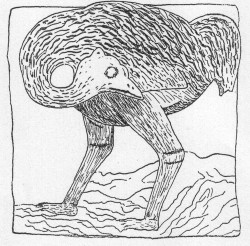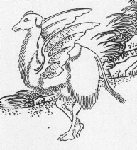 | Left a drawing made from a Tang sculpture of an Ostrich. Right a drawing of an Ostrich from the: Tu shu tsi cheng | ||||||||