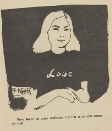 | Nora loves to wear ordinary T-shirts with love notes printed. | ||||||||||||||||||||||