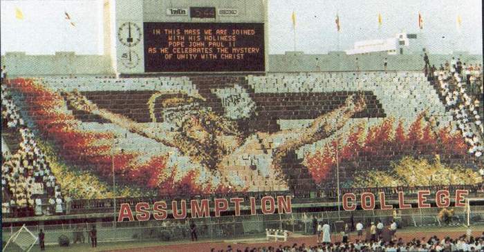 ภาพแรกของการแปรอักษร ซึ่งเกิดขึ้นโดยนักเรียนอัสสัมชัญณ สนามศุภชลาสัย