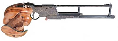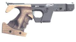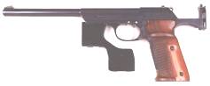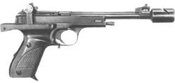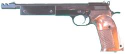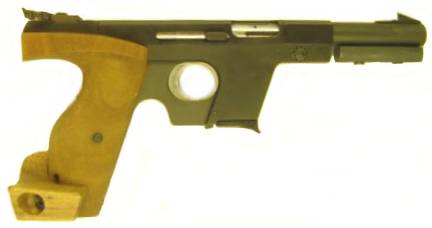 | This is the father of the modern rapid fire pistol. It came into existence in c 1967 and what was revolutionary about it was that the barrel was vented, with four holes each approx 1.5mm drilled into it from the top which allowed the escape of gasses upward thereby negating muzzle lift. The pistol was also modular in construction and could be disassembled easily into its component parts. This became the dominant pistol in the rapid fire match for many decades to come |