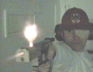| Ralf Schumann of Germany, World and Olympic Champion, shooting a rapid fire series. Note the gasses escaping vertically from the barrel vents |