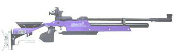 | Modern match air rifles are now made with either aluminium or laminated wood stocks. There are two major types - a pneumatic type wherein the rifle is manually cocked with a lever each time, and the compressed air models, which have a tank of compressed air under the barrel. There is virtually no difference iin the accuracy of either type and each has its proponents. |