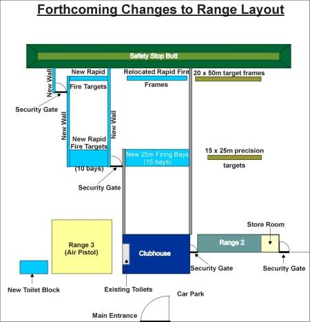 | Panoramic View of the Full Range Complex From the Safety Butt on the Free Pistol Range - New Rapid Fire Range and Toilet Block at Top Right - Air Pistol Range is in Green Building Behind New Toilet Block |
