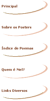 Quando alguma coisa me faz pensar ou rir ou chorar, eu costumo escrever a respeito. Não me considero uma grande escritora, apenas gosto de colocar no papel as coisas que sinto. Sejam elas alegres, doces, tristes ou alucinadas, são reflexões momentâneas, são palavras que não se deixam ficar caladas, são pensamentos, são idéias, ou simplesmente emoções. Reuní aqui alguns dos poemas que fiz. Eles não seguem uma ordem específica nem cronológica. São textos sobre diversos assuntos, escolhidos entre vários outros que escrevi. Selecionei alguns dos que eu mais gosto e estou ilustrando-os um a um. Conforme vão ficando prontos, vou acrescentando os novos textos. Minha intenção ao criar esta página foi a de compartilhar com vocês momentos que me foram importantes, quer tristes quer alegres, e constatar que a vida, embora cheia de surpresas ou adversidades, nunca perde seu encanto e magia.