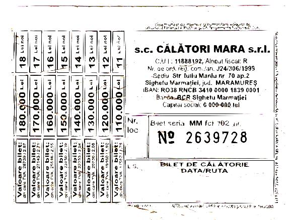 | 05:30 | 10:30 | 5h | CALATORI MARA | POIENILE DE SUB MUNTE-SIGHET-BAIA MARE | MTWTFSS |
