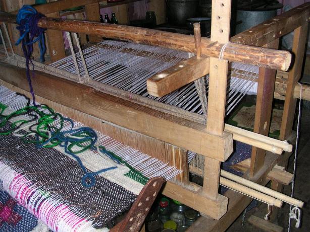 Aquí podemos ver el telar tradicional de la señora Parasca. Con este arte antiquísimo se pueden confeccionar bellas y cálidas mantas de lana. |