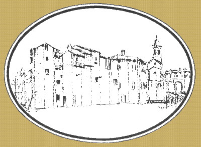 Bozzetto di Clemente Rovere - Il torrione, il Ricetto ed il Ponte nell'anno 1849