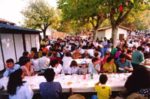 La fine della sfilata segna l'inzio della "grande abbuffata" domenicale che prosegue senza soste fino ad esaurimento delle scorte alimentari e vinicole.