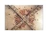 Tipico motivo geometrico a raggi, con stampini floreali sulle costolature e motivi ornamentali sui bordi.