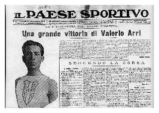 Questo comportamento, bizzarro ed insolito, scaten� l'entusiasmo del pubblico ed impression� fortemente monsieur De Coubertin che, come aveva fatto con Dorando Pietri, lo volle premiare con una coppa personale.Da alcuni anni � stato istruito un premio "Valerio Arri" che ha premiato nella sua prima edizione, il 9 maggio 1996 all'Auditorium del Lingotto, Franco Arese.