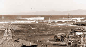Figure 74: King Harbor Marina breakwater being overtopped by high winds and heavy swells, January 18, 1988. (Valerie Heath)