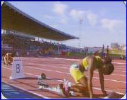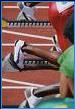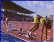 En las pruebas de velocidad (100, 200 y 400 m.) es característico el uso de los bloques de salida para dar un mayor impulso y aceleración en la salida. |