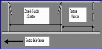 La prezona tiene 10 metros de longitud, y permite al atleta que va a recibir el testigo acelerar hasta la zona de transferencia. |