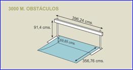 La prueba 3000metros con obstáculos es una carrera en la que los competidores tienen que pasar 28 obstáculos y 7 saltos de agua. Completando así 7 vueltas y media |