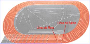 Una vez realizados los primeros 200 metros (que coincide con la línea de llegada), el atleta deberá realizar 12 vueltas para completar el recorrido |
