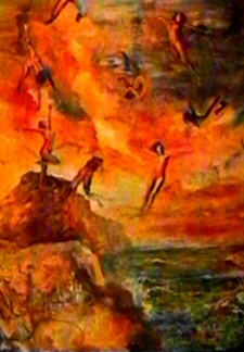 The limbs of the falling andels fade and run into the tempestuous sky,