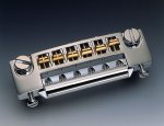of the Schaller bridge/tailpiece. The 'nut' on the guitar (the part that the strings pass over nearest the head)