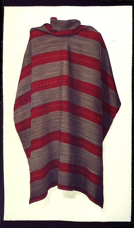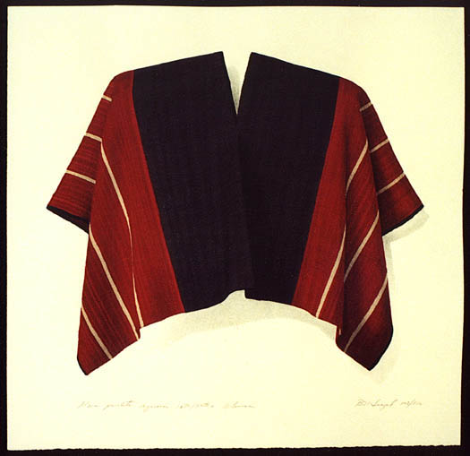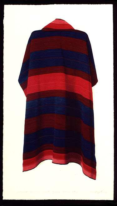 Striped Magenta Poncho (paper size 30"x 43" aprox. with deckle and hand torn edges) $600. unframed