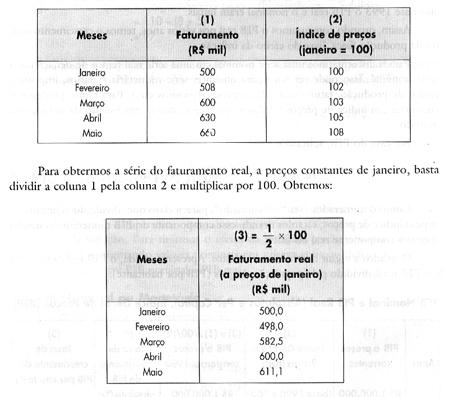 Cabem duas observações quando da deflação de uma série: * Escolha