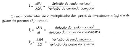 compra de bens de capital; A demanda de investimentos também pode ser afetada pela disponibilidade de fundos de longo prazo. 5. O multiplicador keynesiano de gastos Um dos principais conceitos criados por Keynes foi o do multiplicador de despesas eu gastos. Ele mostra que, se uma economia estiver com recursos desempregados, um aumento de um elemento na demanda agregada provocará um aumento da renda nacional mais que proporcional ao aumento da demanda. Isso ocorre porque, numa economia em desemprego, abaixo de seu produto potencial, qualquer injeção de despesas, seja via gastos com consumo, ou investimento, ou exportações, mas principalmente despesas do governo, provoca um efeito multiplicador nos vários setores da economia, pois o aumento de renda de um setor significará que os assalariados e empresários desse setor gastarão sua renda com outros setores (com alimentação, vestuário, lazer etc.), que por sua vez gastarão com outros bens e serviços, e assim continuamente. 4. Rigorasamente, a eficiência marginal da capital é a taxa de desconto que iguala a valor presente da fluxo dc rendas líquidas esperadas na compra de um bem de capital a seu preço de custo (ou de aquisição). 5. Estamos nos referindo basicamente ao investimento em bens de capital (máquinas, equipamentos, instalações) das empresas. Existem também os investimentos em moradias, que dependem das condições de financiamento e das taxas de juros de mercado, e os investimentos em estoques, que dependem também das taxas de juros e das oscilações de mercado. Suponhamos que o governo resolva gastar, por exemplo, $ 100 milhões em estradas, hospitais e escolas. Ele contratará construtoras, que aumentarão a produção da construção civil nesse valor. Isso se transformará em renda dos trabalhadores e capitalistas do setor de construção civil, que, por sua vez, gastarão com, digamos, alimentos e vestuário. Esses gastos dependerão das propensões marginais a consumir e a poupar. Supondo a propensão a consumir igual a 0,8 e a propensão a poupar igual a 0,2, os trabalhadores e capitalistas da construção civil gastarão $ 80 milhões com alimentos e vestuário, poupando $ 20 milhões. A produção de alimentos e vestuário elevar-se-á em $ 80 milhões, e será transformada em renda (salários, lucros) dos trabalhadores e empresários dos setores de alimentos e vestuário. Com a propensão a consumir agregada de 0,8, estes, por sua vez, gastarão $ 64 milhões (80% de $ 80 milhões) com, digamos, lazer. O setor de lazer receberá um incremento de renda de $ 64 milhões, e o processo continuará. Evidentemente, tende a se encerrar, pois a propensão a poupar limita esse mecanismo: a cada etapa, vaza 20% da renda adicional. Ao final desse processo ocorrerá um acréscimo da renda e produto nacionais muito superior ao gasto inicial de $ 100 milhões. Como se observa, essa multiplicação dependerá das propensões marginais a consumir e a poupar: quanto maior a propensão a consumir da coletividade, maiores os gastos com bens e serviços, em cada etapa, e maior o efeito multiplicador; maior a propensão a poupar, menor o multiplicador. O multiplicador keynesiano (k) costuma ser expresso genericamente como: