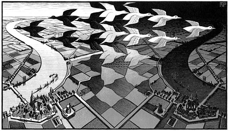 Día y noche. Litografía de Escher