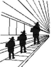 un conjunto de líneas convergentes como líneas paralelas