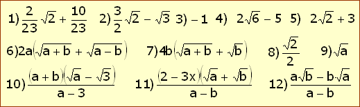 | 5) Soluciones a la racionalización de denominadores | ||