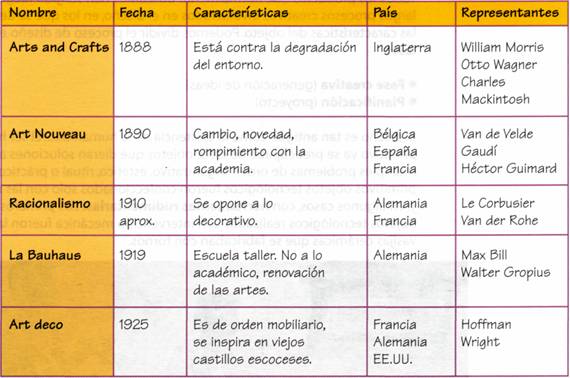 Entre finales del siglo XIX y principios del XX surgen especialmente en Europa numerosos estilos y escuelas de diseño que marcaron épocas. En la siguiente tabla se resumen los principales estilos de diseño.