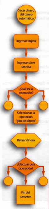 y decisiones que ocurren durante un proceso en el que se produce un determinado resultado, que puede ser un producto, una información o un servicio. Esto se hace a través de ciertas formas y símbolos unidos por flechas.