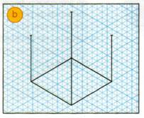 8. Dibuja los planos horizontales y oblicuos uniendo los extremos de las aristas verticales entre sí (c).