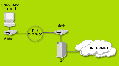 La conexión conmutada, en donde su computador se conecta con el proveedor