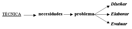 Otro ejemplo: hay personas que necesitan ver mejor. Tienen una carencia de buena visión, es un problema humano. El que busca una solución es un técnico, alguien de carácter práctico. El técnico lo primero que tiene que hacer es diseñar, bosquejar una solución. Después debe elaborar el aparato u objeto diseñado y después debe probar lo que ha hecho. Estos son los tres pasos básicos: DISEÑAR, ELABORAR y PROBAR.