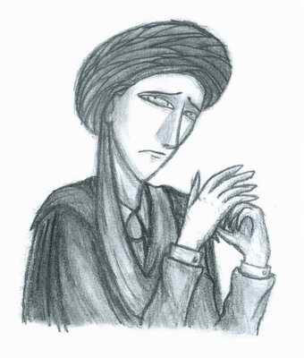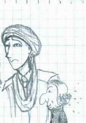 | An early drawing of Quirrell! (The hooked-nosed man is supposed to be Snape!) |