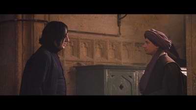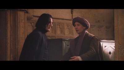 | Snape is giving Quirrell a look that clearly says he is on to him. | ||||||||||||||||||||||||