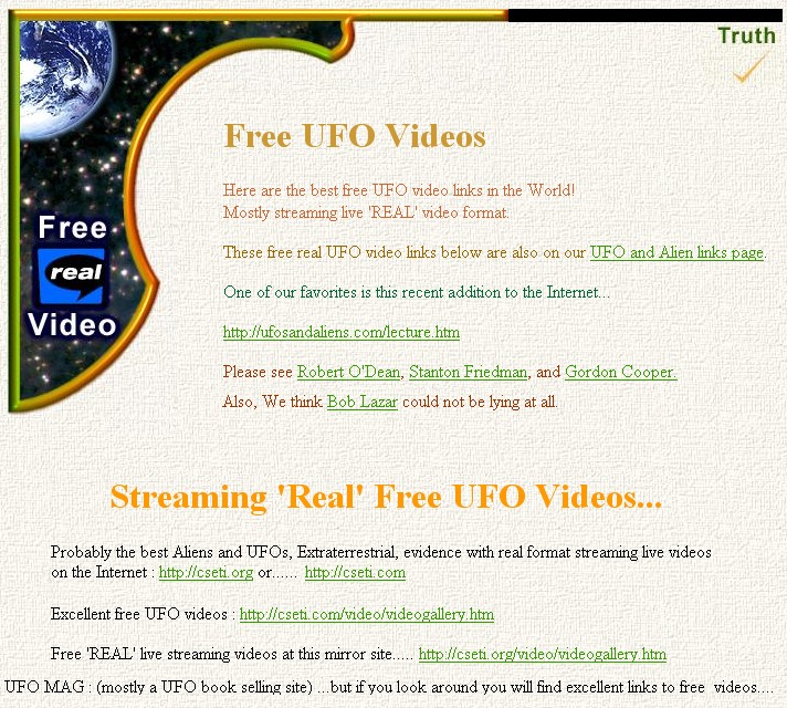 First UFO Site I lost the password when I moved, Close browser window, ProjectMotherShip.GooglePages.com Or here ... Or here ... Or here ...