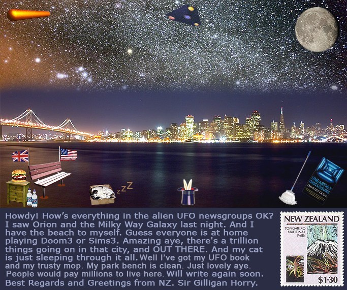 Funny UFO Postcards I made several other UFO postcards. Please don't think of me as a beggar