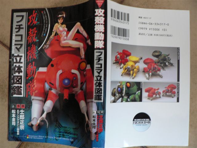 | GitS More Books Two books about the first GitS: 1) the original book about the game for PS. It includes the original sketches for characters design and some illustrations drawn by Shirow himself, plus various stuff about the game; 2) then a book to create 4 different Fuchikoma paper models, exactly reproducing the mechas seen in the original manga. |