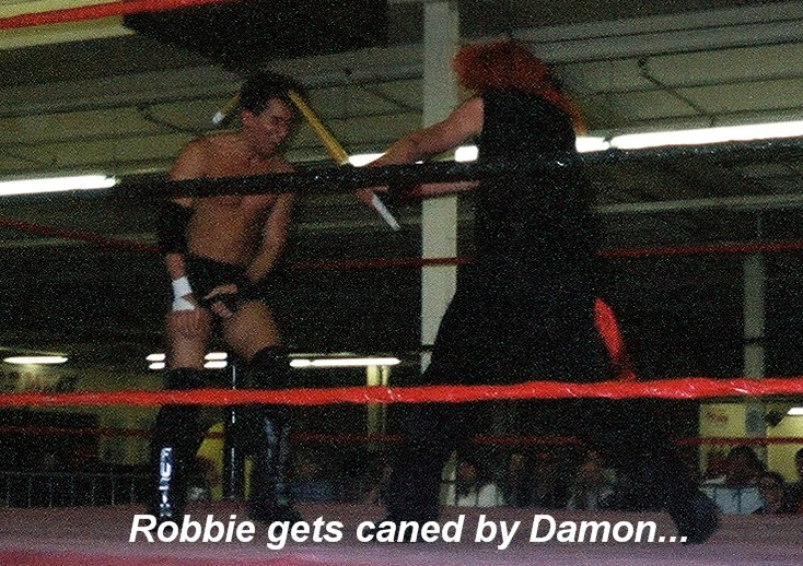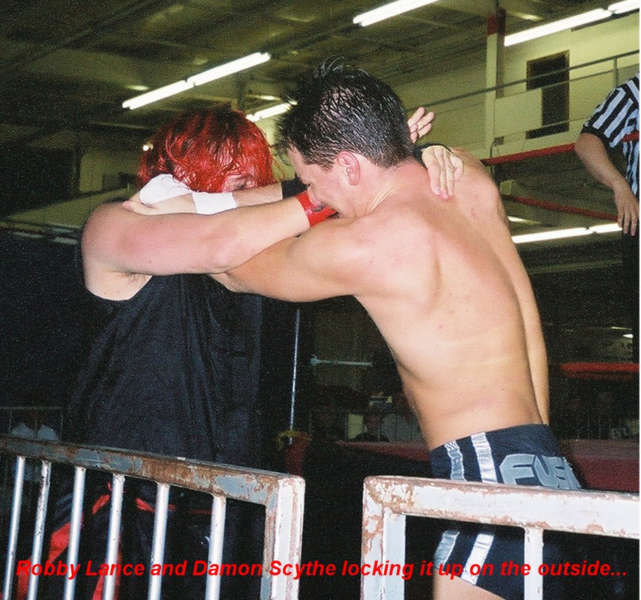 The third match of the night sawtwo great up and comers, Damon Scythe and Robbie Lance go at it...These guys are former tag team partners, and have both trained under "Tornado" Tony Kozina, so these two definitely aren't strangers to each others in ring tecnique...They both displayed great mat skills and hit some sick areial spots as well...This just could have been the best match of the evening, if it wasnt for Damon's use of a singapore cane on Robbie, causing his disqualification...I(t is still always a treat to see matches with Kozina's students...WINNER: Robbie Lance by DQ